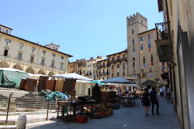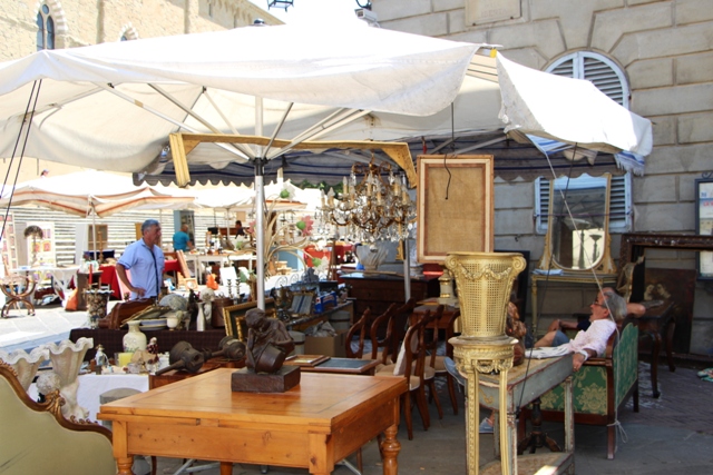 La Fiera Antiquaria di Arezzo, auf Deutsch, der Antiquitätenmarkt in Arezzo, ist der berühmteste Antiquitätenmarkt in der Toskana. Er findet jeden ersten Sonntag im Monat sowie dem vorhergehenden Samstag im Zentrum, vom Hauptplatz der Piazza Grande ausgehend, in den Nebenstrassen statt. Wahrhafte Schätze -wie Kronleuchter, irre schöne Möbelstücke- entdecken. Nur leisten kann man sich das nicht jeden Tag! Eher zufällig sind wir dazu gestoßen und haben uns durch die Stadt „tragen“ lassen.