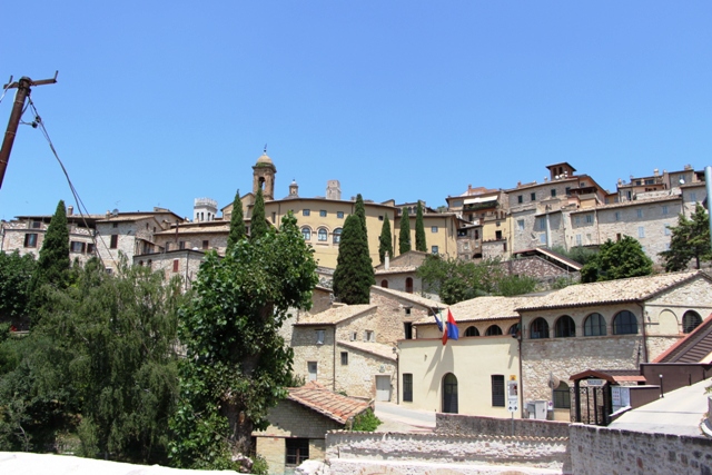 Auf einem Hügel oberhalb der Flüsse Topino und Clitunno in 431 Meter Seehöhe gelegen, bietet sich von diesem „Balkon Umbriens“ ein weiter Blick über die Ebene nach Perugia und Assisi, Foligno und Spello, Trevi und Spoleto.