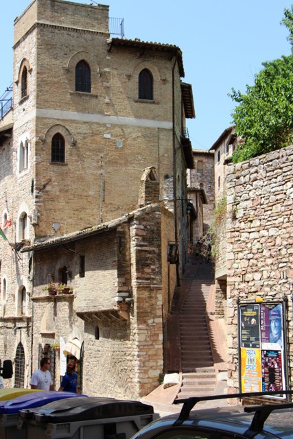 Ganz in der Nähe von Perugia liegt Assisi. Das war nicht der Wohnort von Franz und Sissi, vielmehr hat der Hl. Franziskus dort gewirkt und die Legende sagt, er habe sich mit Tieren unterhalten können. Allerorten in Assisi ist dies auf Bildern, Fresken, Fähnchen, Gläsern und Krügen zu sehen.
